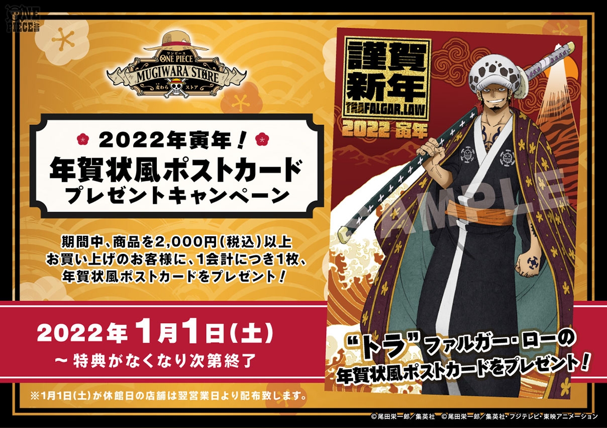 One Piece Com ワンピース 麦わらストア 新年最初のキャンペーンが1月1日 土 からスタート 22年は トラ 年ということで トラ ファルガー ローの年賀状風ポストカードがもらえるチャンス T Co Jpsdn2oqmw Onepiece T Co